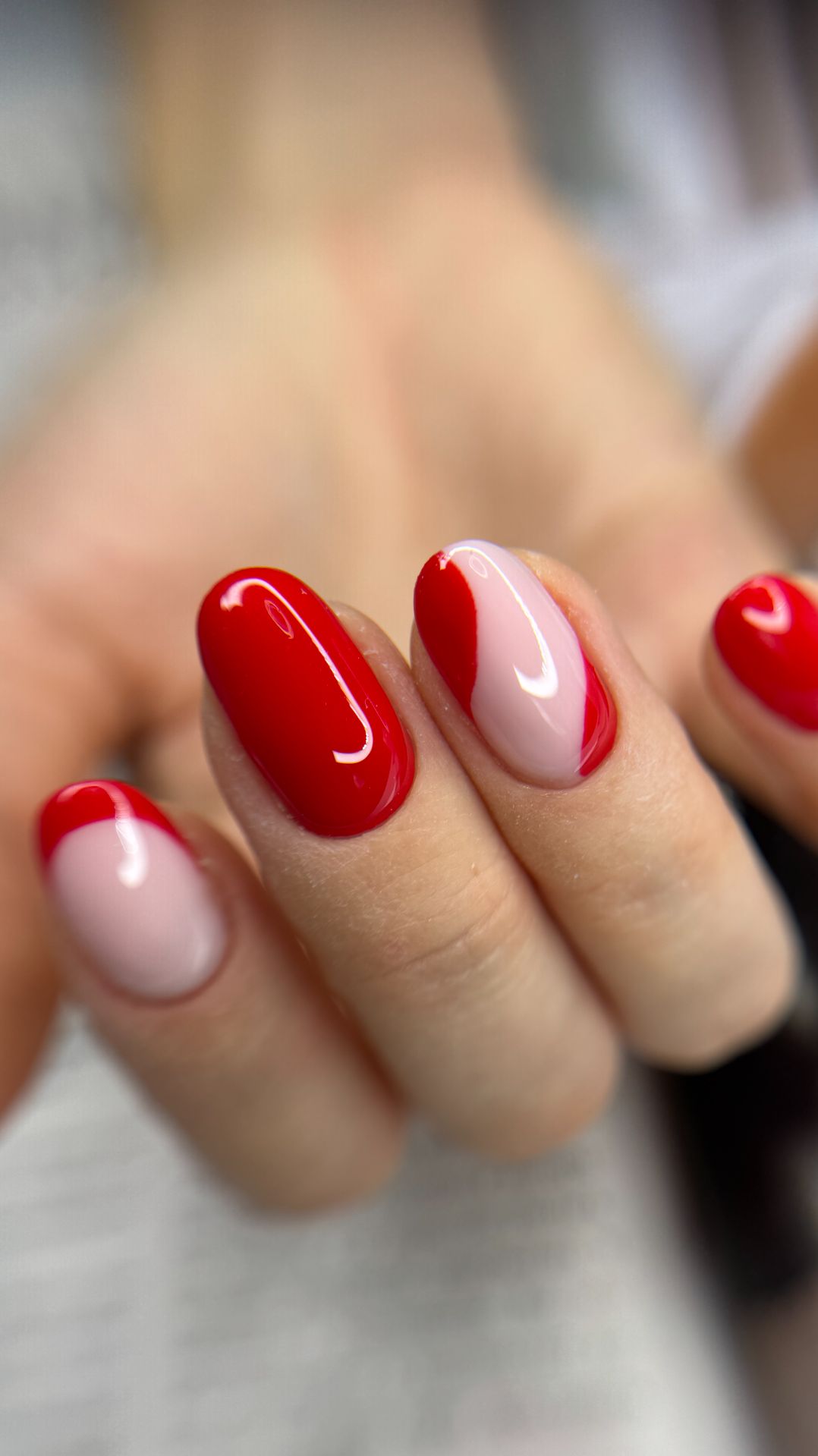 МК Красный маникюр для овальной формы ногтей с UNO Easy build up